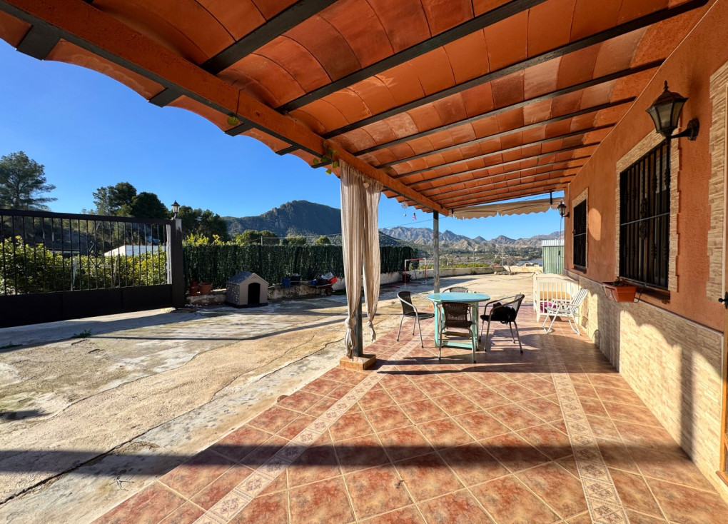 Dispone de un gran porche delantero cubierto de aproximadamente 20 m², con impresionantes vistas y toldo adicional instalado para mayor protección solar.