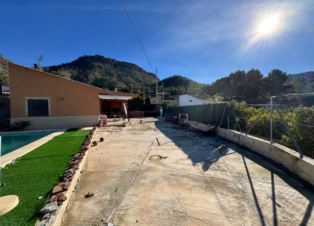 La propiedad está completamente vallada, cuenta con acceso privado mediante puerta automática, amplio aparcamiento, terrazas para tomar el sol, terraza de piscina y zona de almacenamiento en la parte trasera de la vivienda.